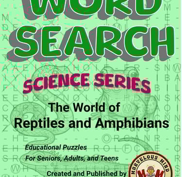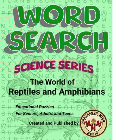 Learn about the World of Reptiles and Amphibians through over 100 word search puzzles containing more than 5000 words. From snakes to frogs to turtles to toads, this book has it all. Also includes a "secret" word in all puzzles for those wanting further challenge.